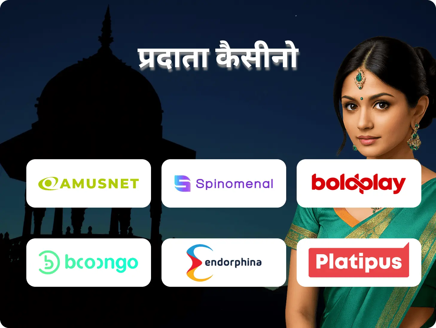 कैसीनो मनोरंजन की दुनिया सभी इच्छुक खिलाड़ियों के लिए खुली है। इसका मतलब है कि आपको बस एक खाता खोलना है, जमा राशि जमा करनी है और खेलना शुरू करना है। भारत के ग्राहक 2,000 से ज़्यादा खेलों में से चुन सकते हैं जो आपको जीतने के कई मौके देंगे। हमें निम्नलिखित प्रदाताओं से खेल उपलब्ध कराए गए हैं: